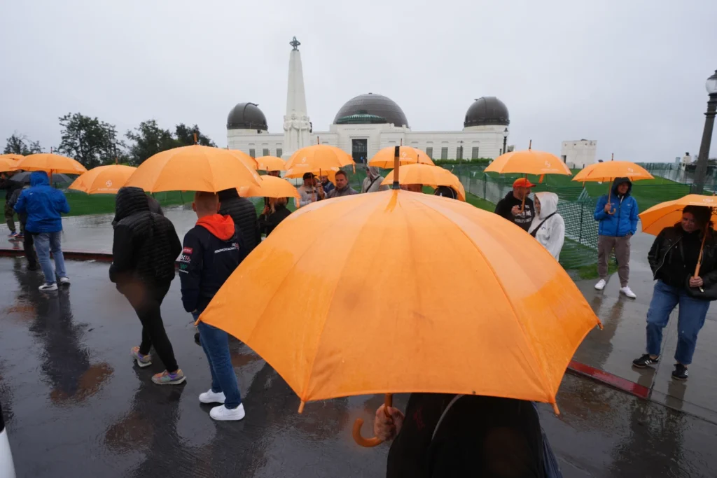 Still, Alex and Kateryna Tsykhanivski made a wet morning trek to the Griffith Observatory, which usually offers sweeping vistas of Los Angeles. The view Tuesday was obscured by heavy clouds as downpours intensified.
