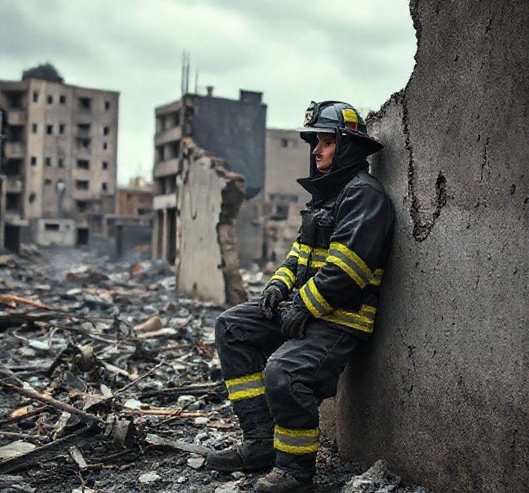 a-person-in-dark-firefighter-like-protective-gear-with-bright-reflective-stripes-rests-against-a-br.jpg