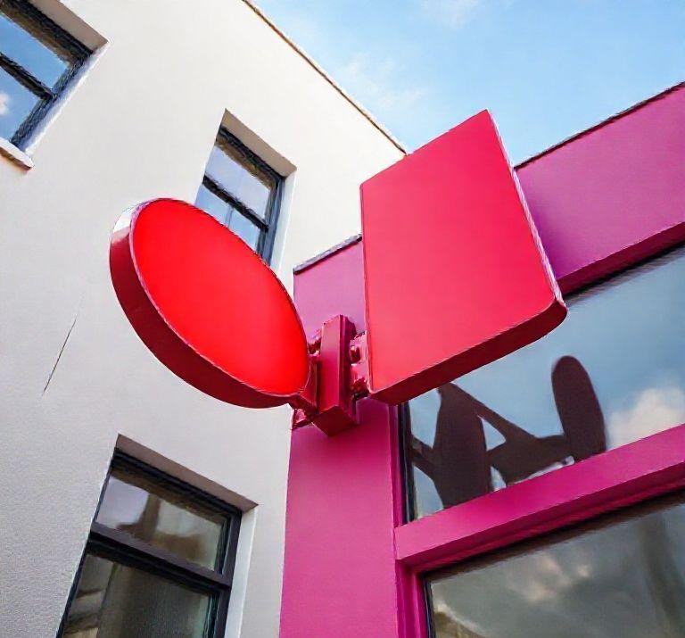 a-bright-red-oval-sign-and-an-elongated-rectangular-red-sign-both-mounted-on-a-red-bracket-affixed.jpg