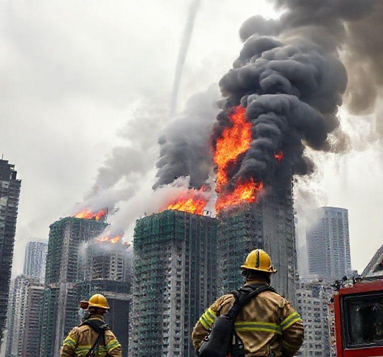 Millenium TV has learned that the inferno, which spread rapidly both vertically and horizontally between the buildings, was fueled by protective netting used during extensive renovations that reportedly failed to meet flame retardant standards. The fire, which required over 2,000 firefighters to bring under control, raged for approximately 40 hours before being fully extinguished by Friday morning.