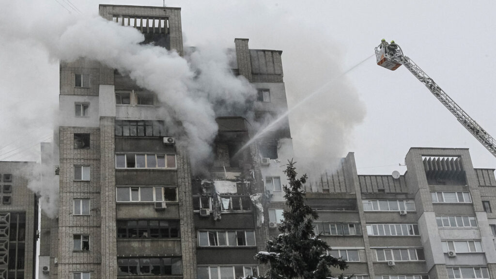 Russian Drone Strike Severely Damages Residential Building in Dnipro, Ukraine
