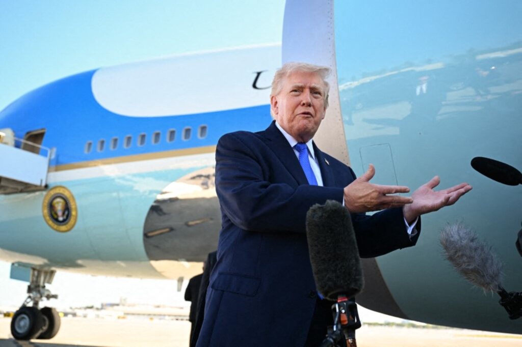 WEST PALM BEACH, FLORIDA - MARCH 23: U.S. President Donald Trump speaks to reporters before boarding Air Force One at Palm Beach International Airport on March 23, 2026 in West Palm Beach, Florida. President Trump is traveling to Tennessee before returning to Washington. Roberto Schmidt/Getty Images/AFP (Photo by ROBERTO SCHMIDT / GETTY IMAGES NORTH AMERICA / Getty Images via AFP)