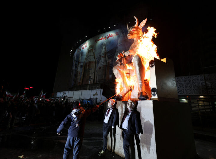 Iranians Burn Effigies of Trump and Netanyahu at Warship Victim Rally in Tehran Iranians Burn Effigies of Trump and Netanyahu at Warship Victim Rally in Tehran