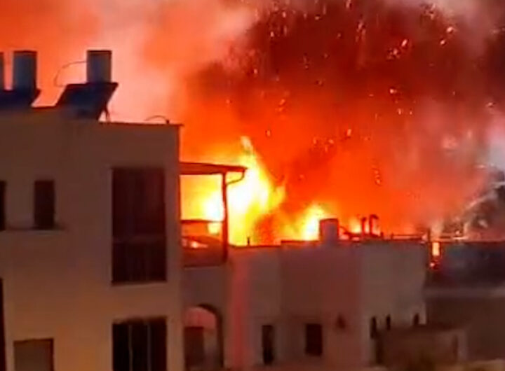 Building Burns in Nahariyya Following Rocket Attack from Lebanon Building Burns in Nahariyya Following Rocket Attack from Lebanon