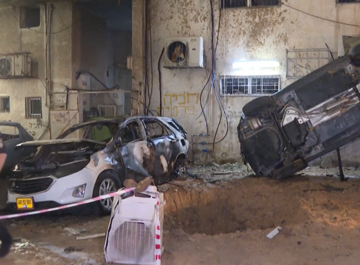 Cars Damaged and Overturned by Shrapnel in Tel Aviv Following Iranian Missile Strikes Cars Damaged and Overturned by Shrapnel in Tel Aviv Following Iranian Missile Strikes