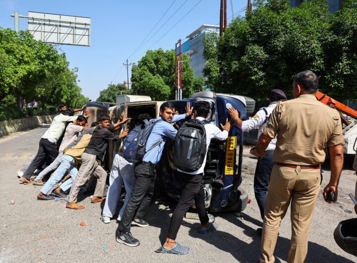 Tear Gas Fired at Indian Factory Workers Protest in Noida Over Wage Demands Amid Rising Living Costs Tear Gas Fired at Indian Factory Workers Protest in Noida Over Wage Demands Amid Rising Living Costs
