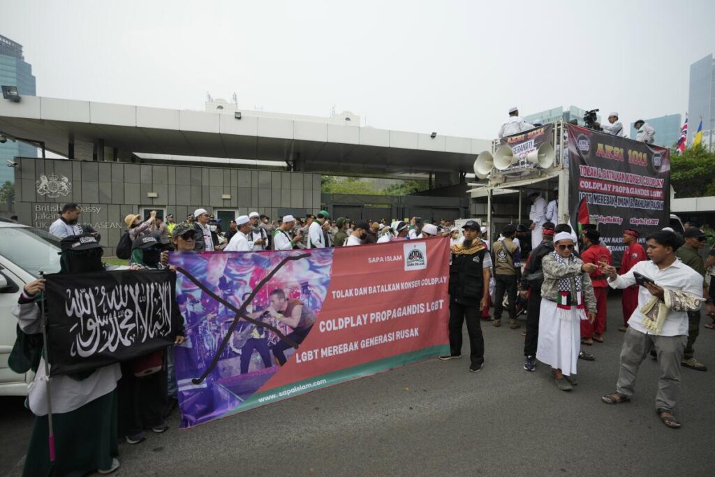 Conservative Muslims protest Coldplay’s planned concert in Indonesia over the band’s LGBTQ+ support Conservative Muslims protest Coldplay’s planned concert in Indonesia over the band’s LGBTQ+ support